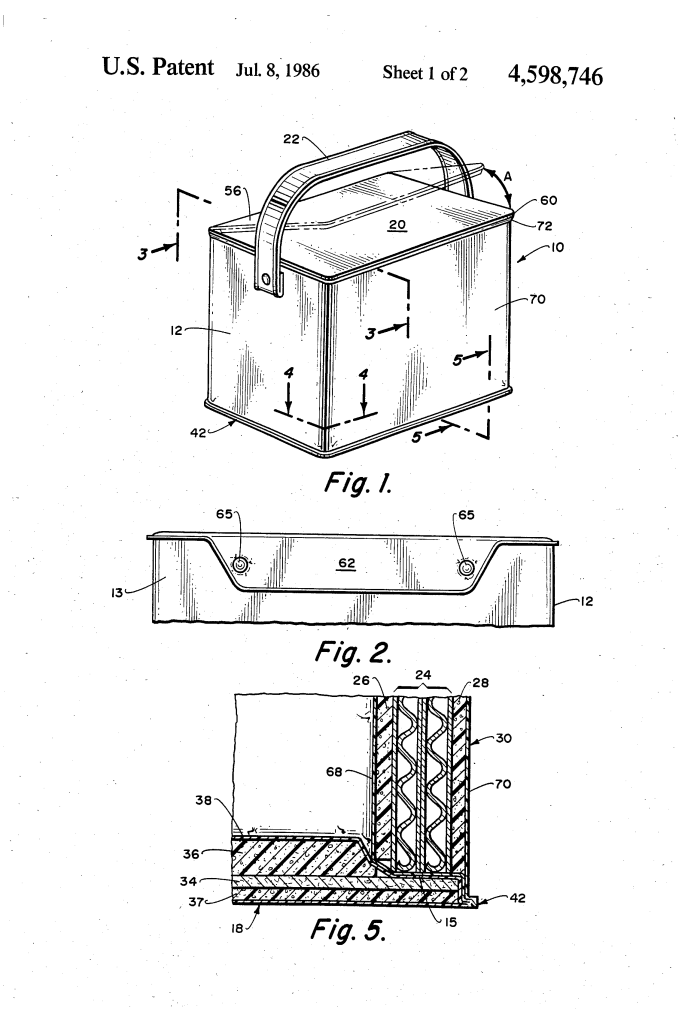 This collapsible tote bag/cooler design would go on to join a long line of similar lunchbox-style coolers and insulated totes, many of which Nappe-Babecock had already been manufacturing for Budweiser, Pepsi, Frigid Mate, and others for years.