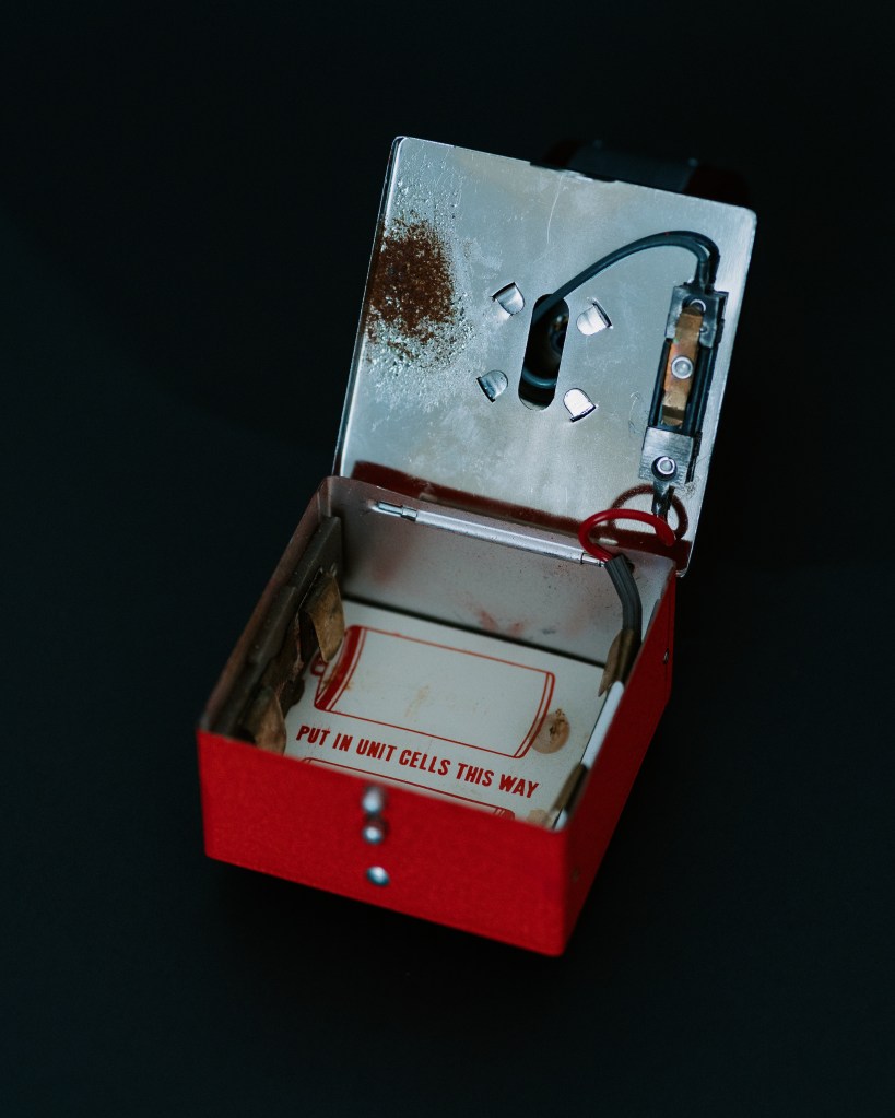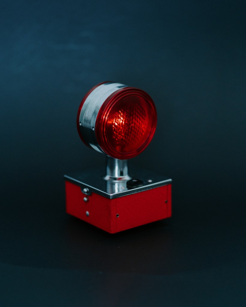 The light, which is still wired surprisingly well (kudos to the previous owner if that was you), runs off of two (2) D-batteries. When the one ‘ON/OFF’ switch is engaged, the lantern produces a slow, steady blink. At the lantern’s base is a handy, clip-on attachment, which allows for easy-hanging on a vehicle window or door.