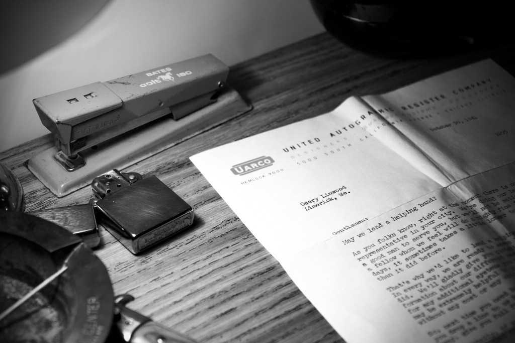 P.S. If you have any additional information on the UARCO autographic register known as the ‘Featherweight Recorder’, or the individual who I believe to have owned it (Linwood L. Garey of Limerick, Maine), please contact me.