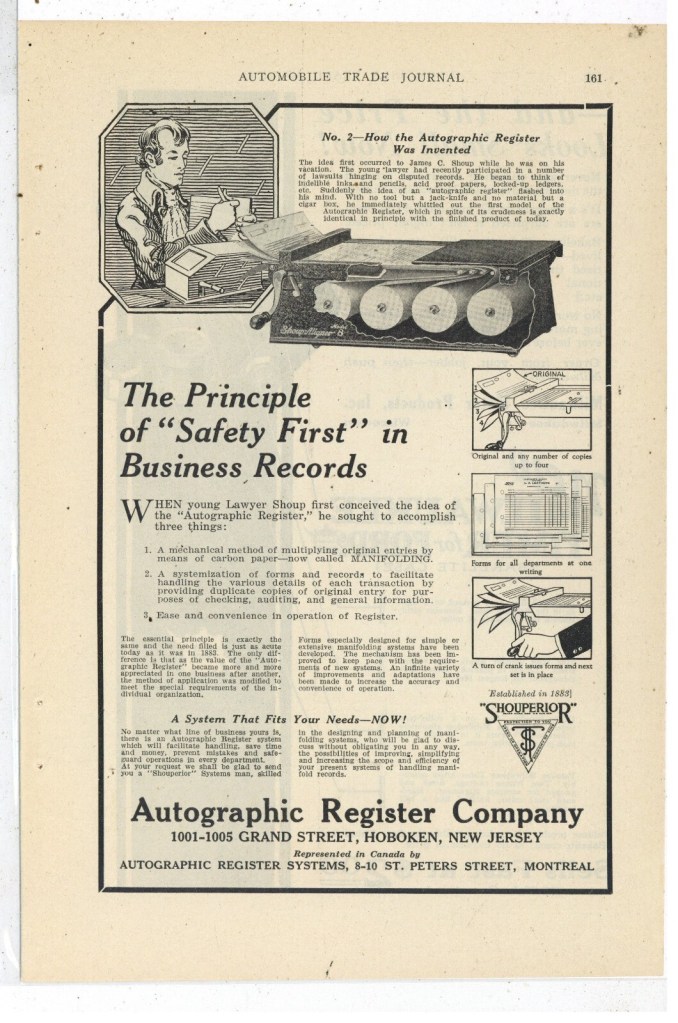 In fact, the Manchester, New Hampshire city library has a digitized copy of an office appliance manual from 1926, which lists the autographic register under the “Early Achievements In Office Machinery” chapter for the machine’s genius.