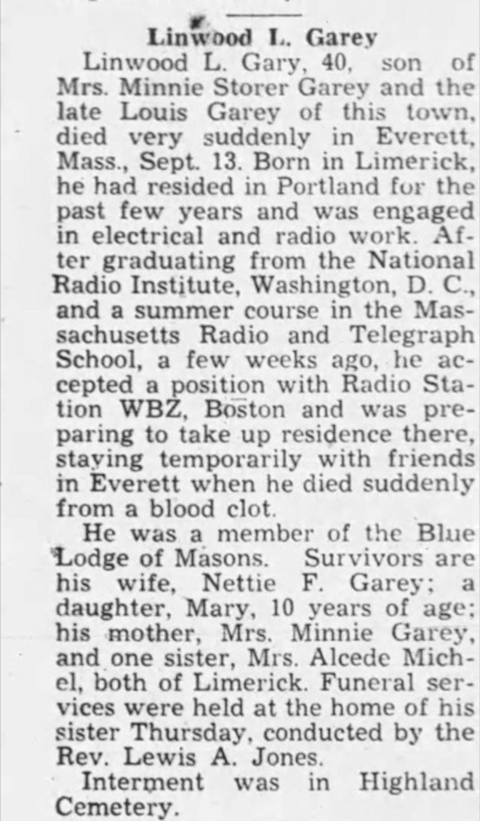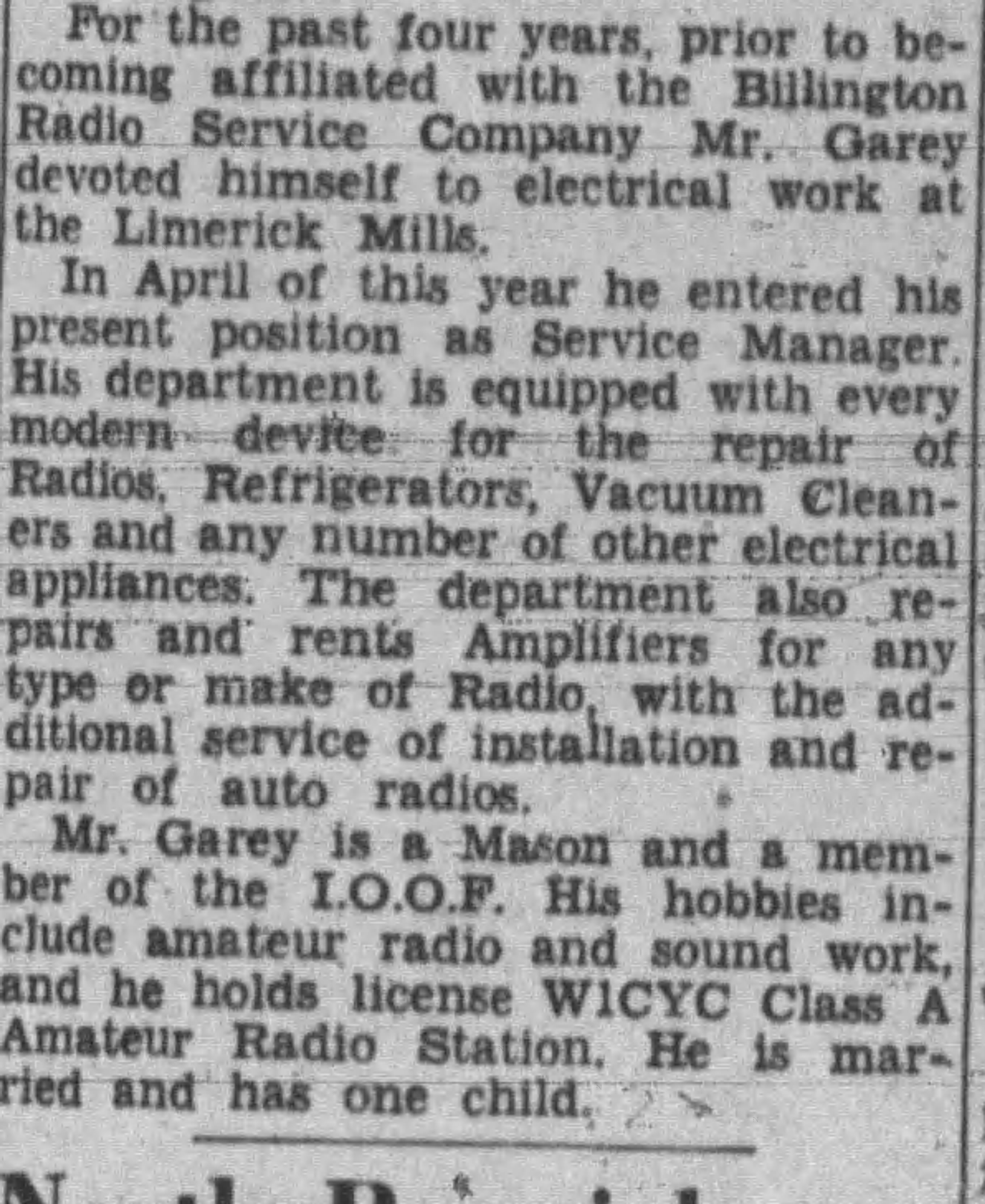 After searching through the digital archives of a few Maine-based newspapers, I discovered that Linwood L. Garey (the spelling of ‘GEAREY’ as his surname on the letter I found is likely a typo) was: an active community member, a Tower Oil Burner dealer/salesman for Limerick, former lineman, Mason and I.O.O.F member (Independent Order of Odd Fellows), and radio engineer from Limerick, Maine.