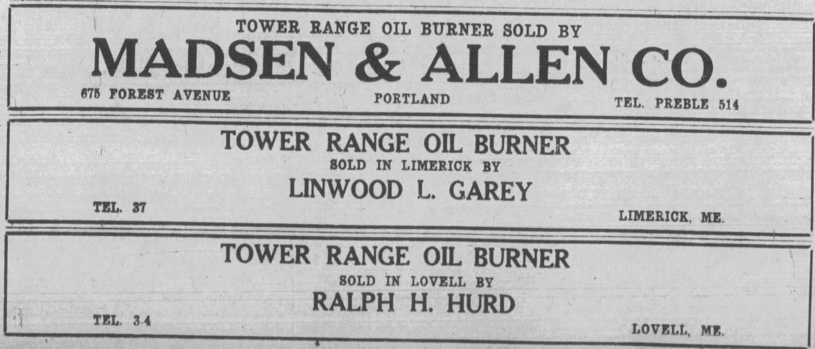 LINWOOD L. GAREY | LIMERICK, MAINE | TELEPHONE 37